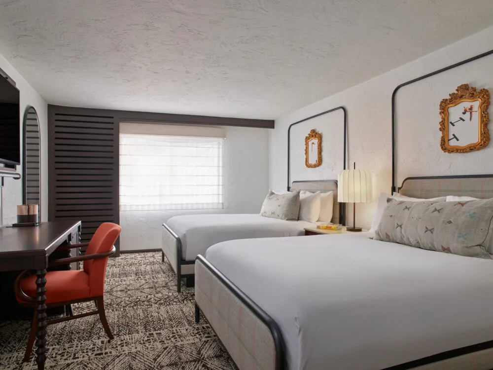 Add a bit more room in the two queen beds deluxe guestroom with lush bedding, spacious bathroom and Spanish-inspired design.